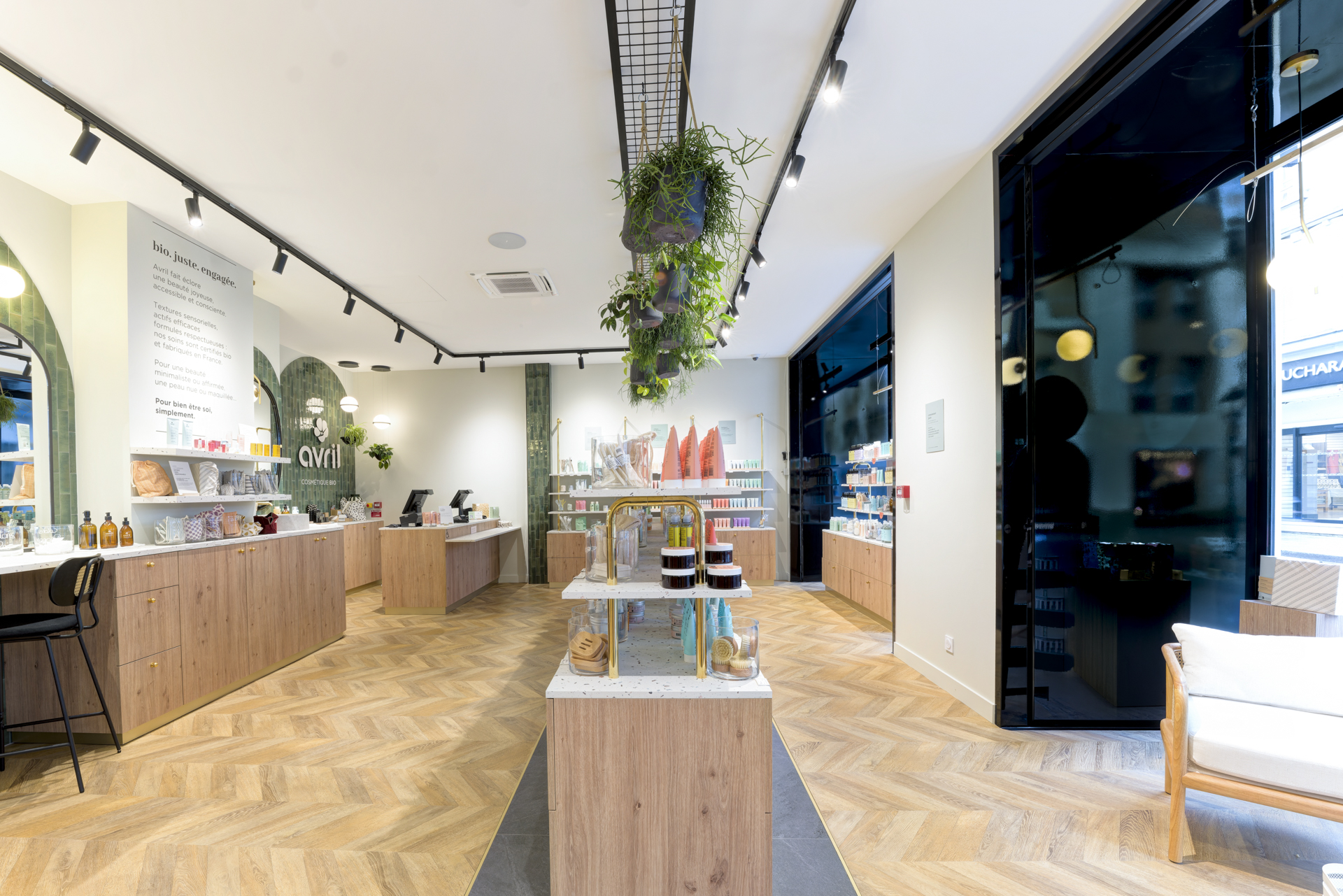 Pour ce projet situé en centre-ville de Laval, j’ai accompagné la boutique Avril Cosmétique Bio dans l’aménagement complet de son espace de vente, afin de créer une atmosphère à la fois chaleureuse, fonctionnelle et représentative de l’identité de la marque.