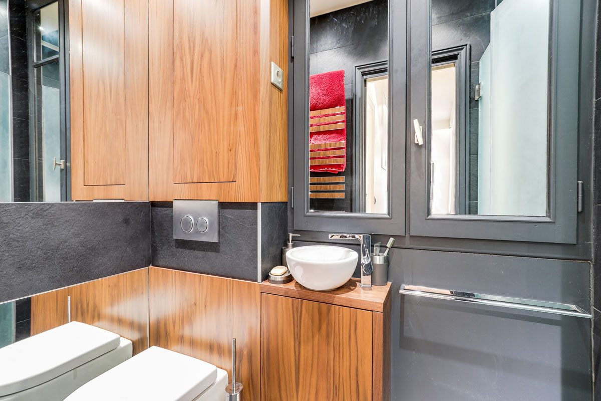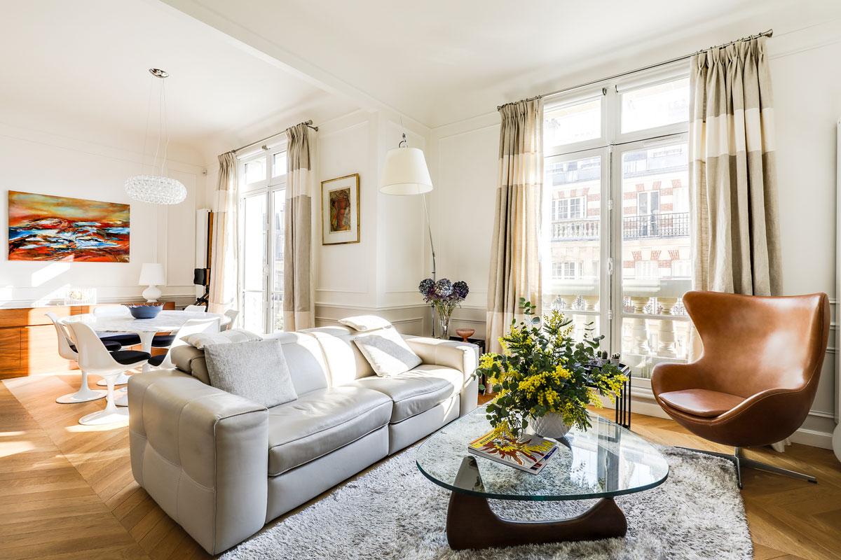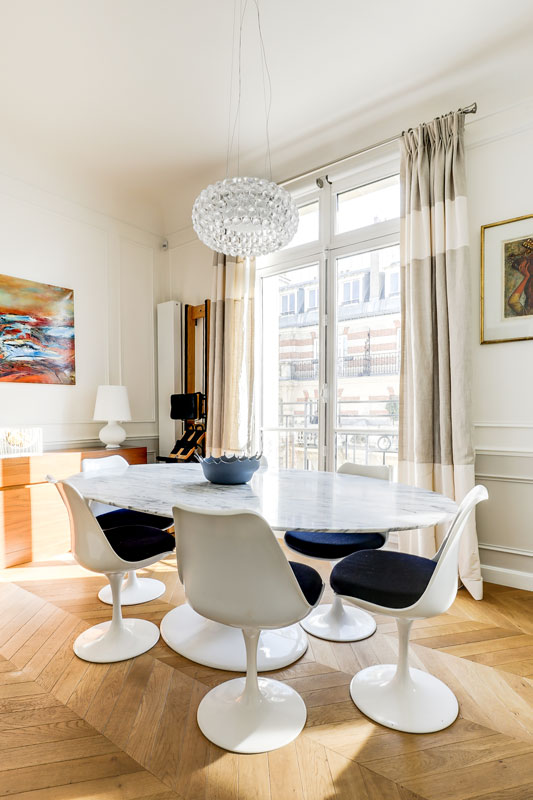 Après : Un appartement lumineux et chic avec des matériaux nobles.