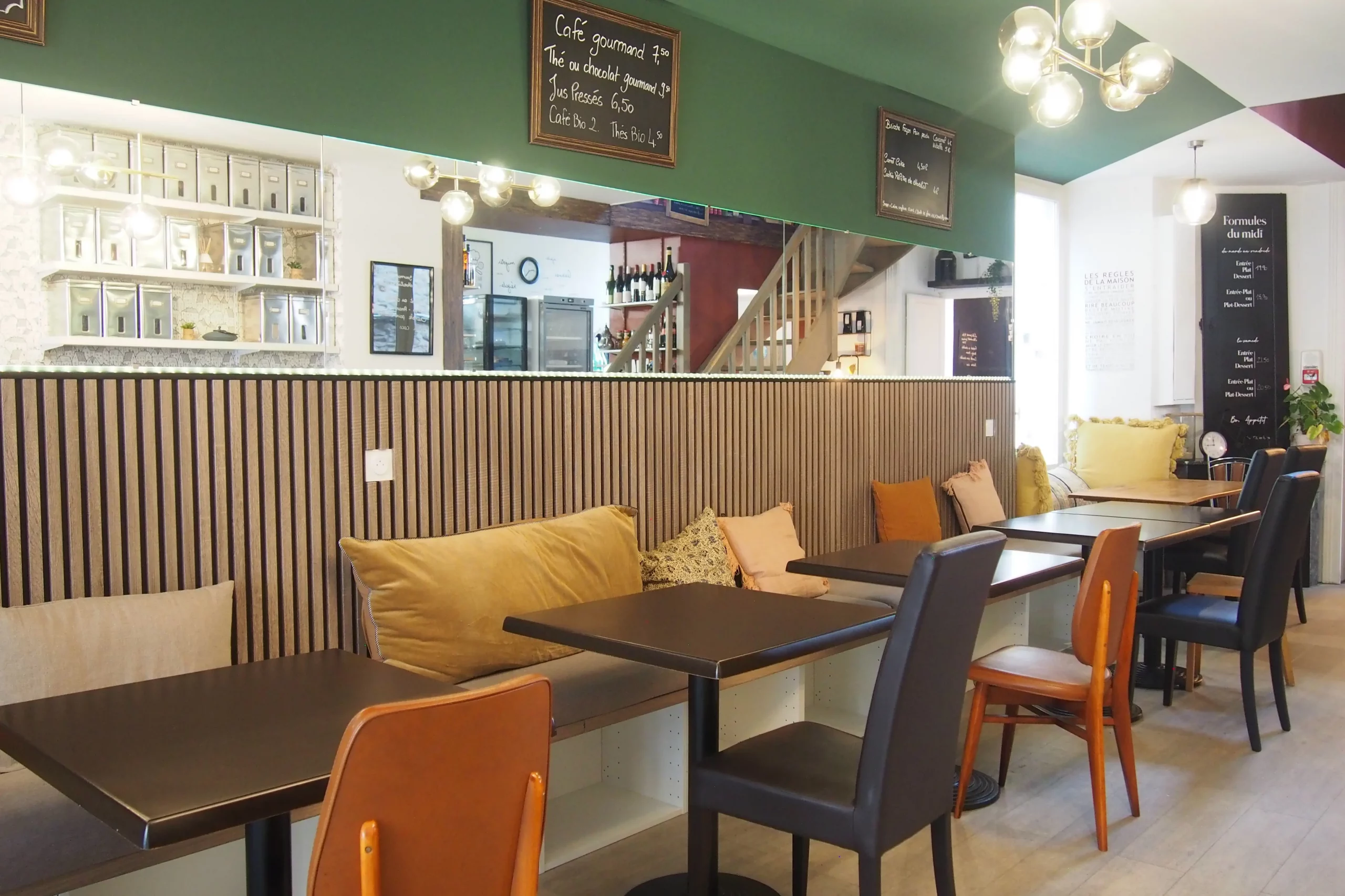 Pour ce projet, j'ai accompagné ma cliente pour le rafraîchissement de la salle de son restaurant. Le but de ce projet "tait de donner une belle identité décorative à cet espace tout en longueur. Les valeurs que la propriétaire souhaite partager dans ses plats, sont désormais présentent également dans sa décoration.