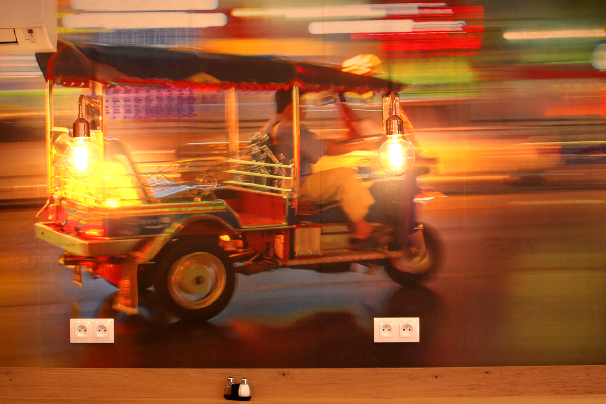 La cuisine indienne est chaleureuse et conviviale, nous avons donc eu l’idée de créer une cantine avec de longues tables, le lieux s’y adaptait parfaitement.